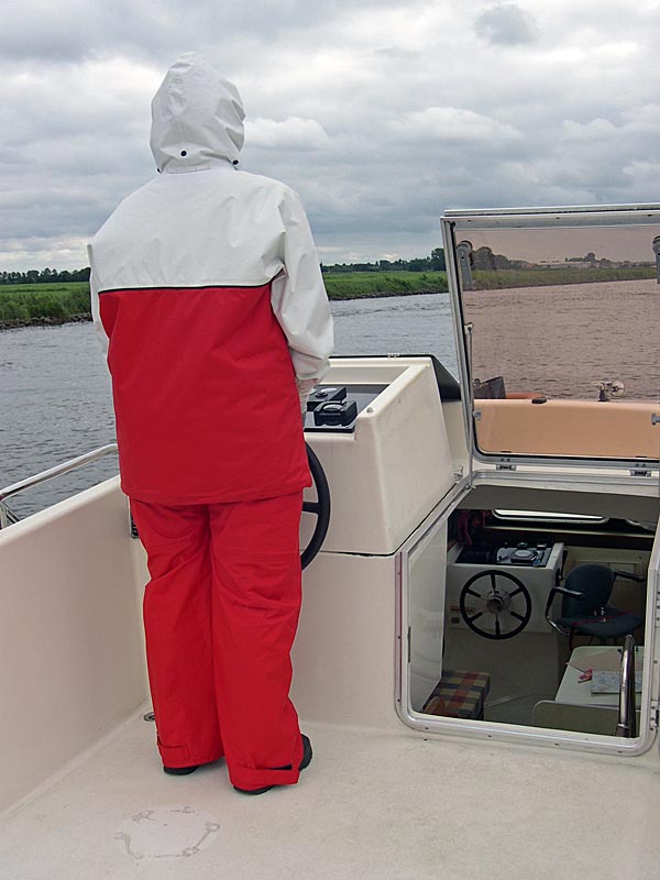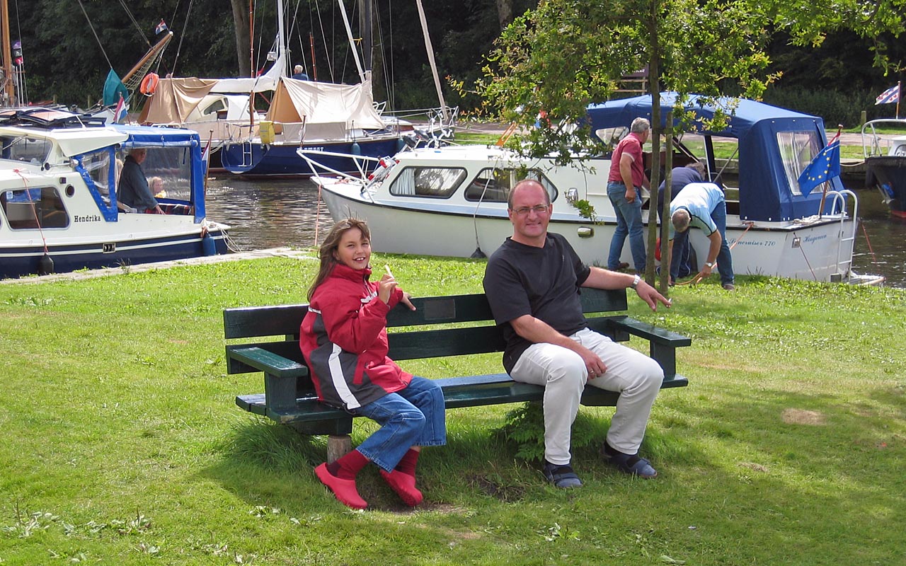 Marion´s Vater schwärmte von Touren mit Hausbooten in Frankreich. Wir fanden das Revier nördlich des Ijsselmeers toll und wollten das ausprobieren. Roger war der Meinung, das sei alles ganz easy, denn Marion hatte ja den “Segelschein Binnen mit Motor” und das “UKW-Sprechfunkzeugnis”. Also buchten wir über irgend so einen Freizeitkapitän via Internet eine Prinzessin Sheba “pauschal” (und teuer) nach Grundriss. Was das war, erfuhren wir unmittelbar nach Urlaubsantritt. Ein unsauberes mit Mängeln behaftetes Boot, aber wir hatten ja keinen Vergleich, also war es so in Ordnung.(Damals waren die Fender noch nicht am Rumpf angenietet.) In Sneek, der Adresse folgend bei “Zelda-Yachting” angekommen, lobpreiste der Einweiser den starken Motor und das gute Fahrverhalten, von dem weder Marion noch ich, geschweige denn Sina Ahnung hatten. Hier klärte sich auch sofort die Frage, wer überhaupt fährt und wer Skipper ist. Na Danke! “Roger, Du hast technisches Verständnis; mach das mal” Der Einweiser zeigte die Funktion der Hebel und des Steuerrads und legte mit uns mal kurz ab und wieder an. Dann wünschte er uns eine schöne Woche. Also legte ich ab, nachdem wir geklärt hatten, dass Marion die Leinen beim Los- und Festmachen bedient und dass man der Wasserkarte schon eine gewisse Aufmerksamkeit widmen sollte! Wir stellten in Absprache mit dem Einweiser fest, dass am wenigsten schief gehen konnte, wenn wir über den Houkesloot und den Princes-Margriet-Kanaal in zwei Stunden nach Grow fahren und dort irgedwo festmachen würden. Also “hangelten” wir uns mit wüsten Steuerbewegungen und brutaler Platzangst aus Sneek raus, durch die Terherne, die beiden Brücken vor Grow und landeten an dem Aussenanleger des Teehuis in Grow, wo wir nachts bleiben durften, wenn wir dort verzehren würden. Selten war ein Gericht so preiswert und schmackhaft.... nein, es war wirklich lecker! |