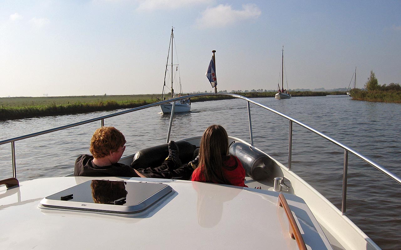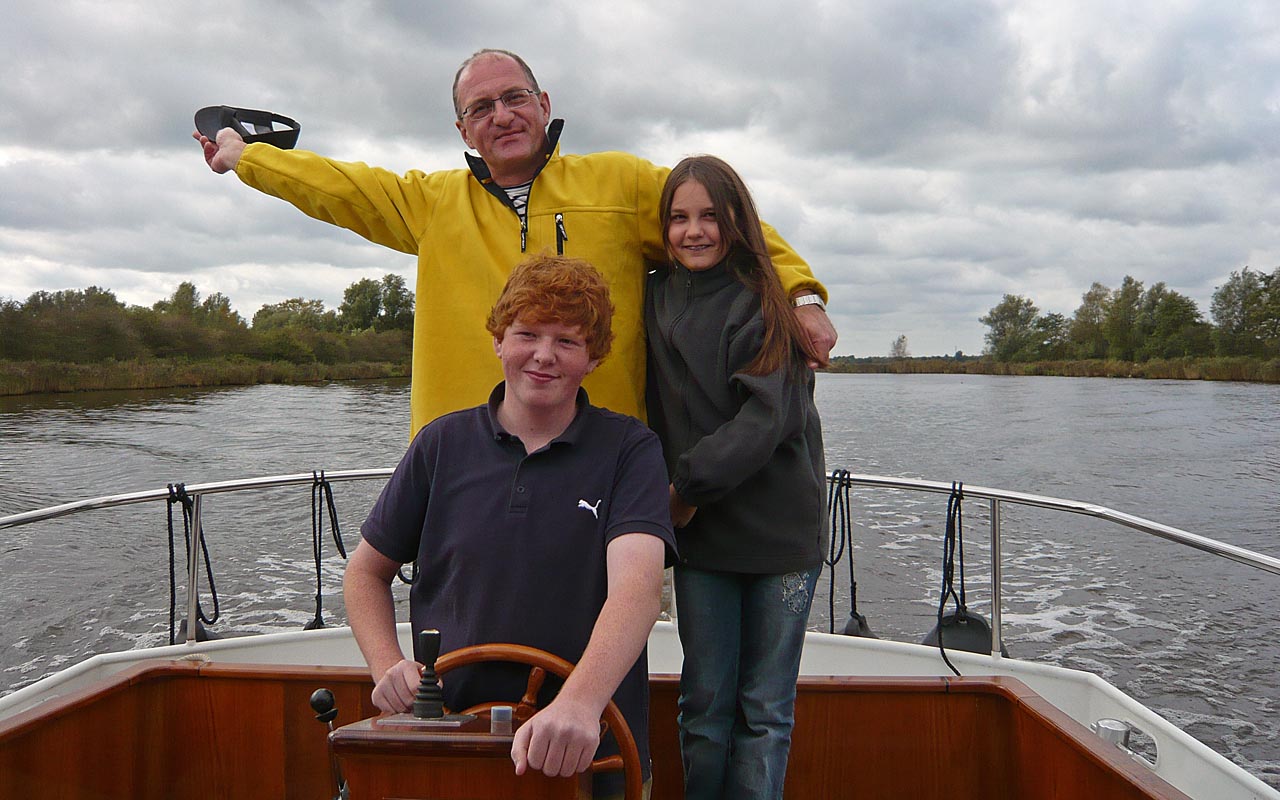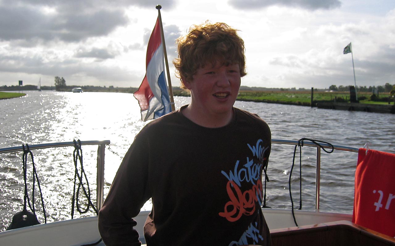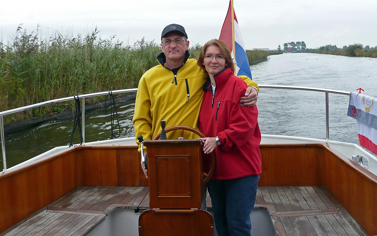 Der Sonntagmorgen war traumhaft schön, es erwartete uns ein herrlicher Sonnentag. Wir legten nach einem reichlichen Frühstück ab und fuhren über Sloten in Richtung Woudsend. Nachdem Eike sich schon am Samstag mit der Steuerung des Schiffs vertraut gemacht hatte, übernahm er heute schon maßgeblich das Ruder auf offenem Wasser.