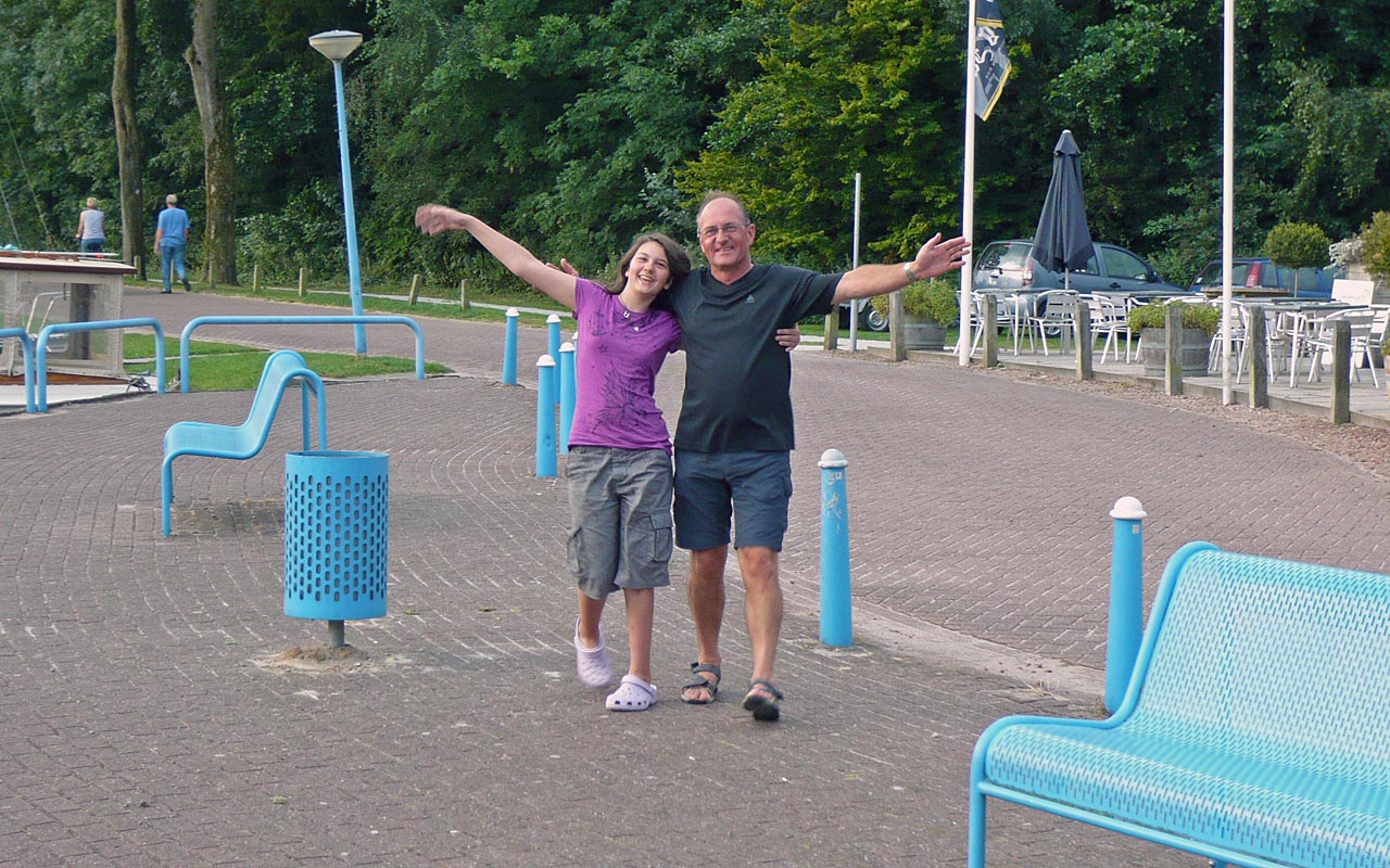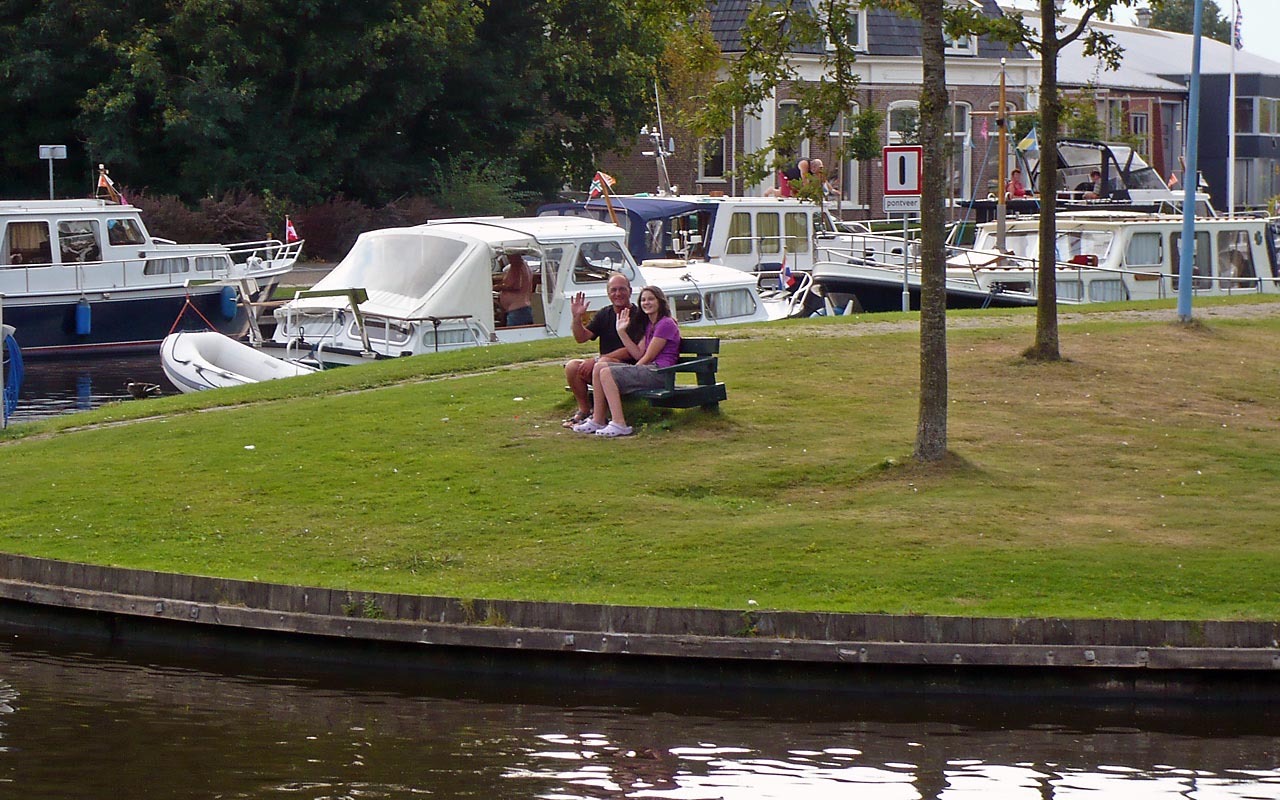 Da ist sie wieder, Sina’s und Roger’s Lieblingsbank in Joure. Das vermittelt gute Laune und stärkt auch gegen das heraufziehende abendliche Gewitter an Bord, welches unsere Senioren mit unangemessen scharfen Tönen befeuerten. Und als sich dies verzogen hatte, machten wir noch einen erfrischenden Abendspaziergang zu dritt durch Joure.