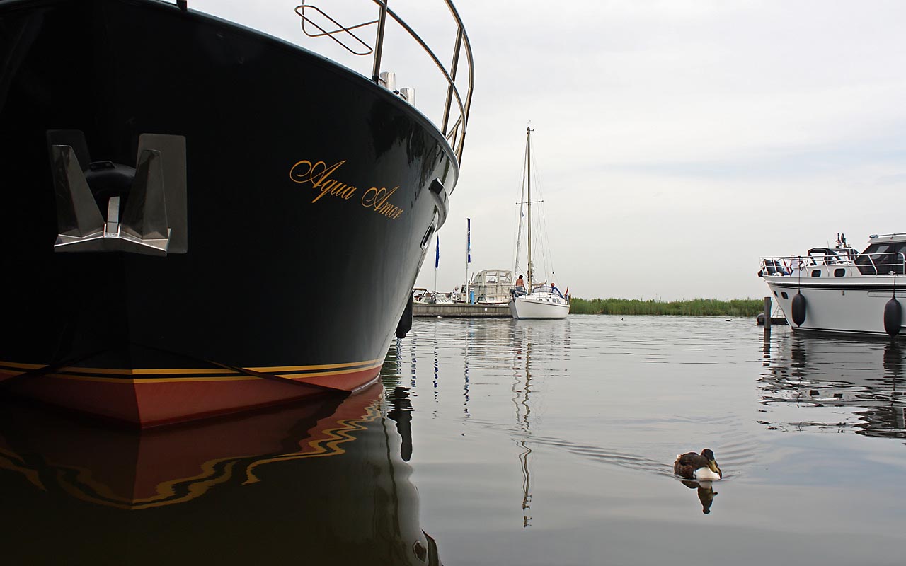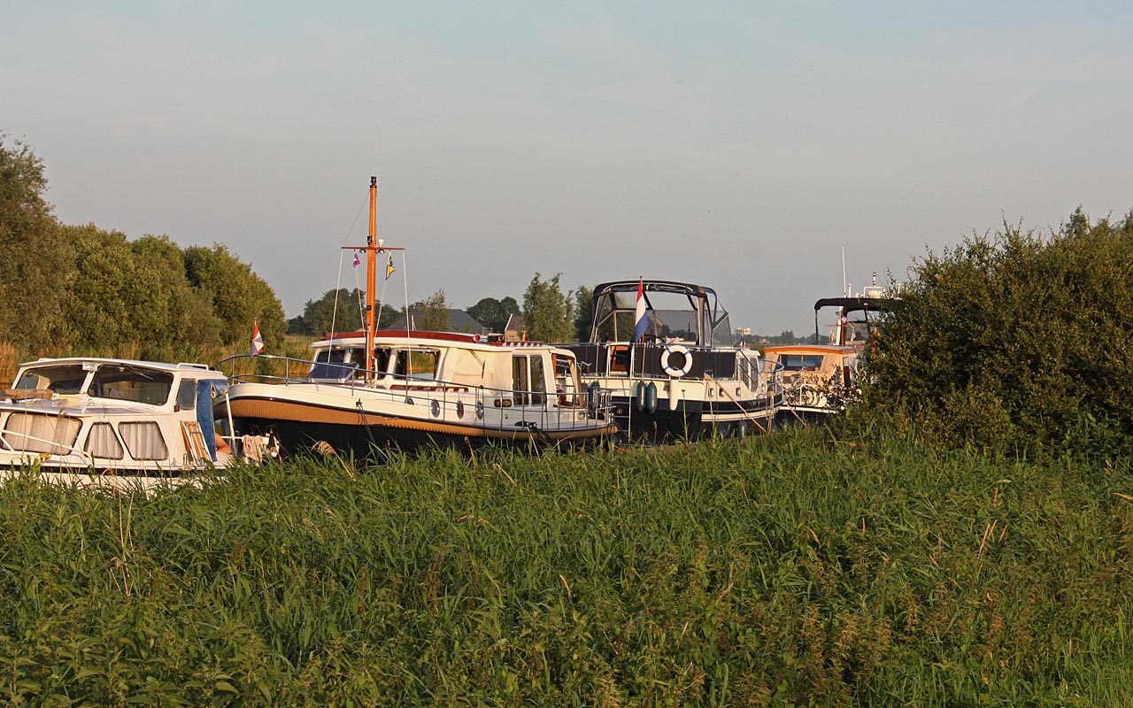 Da sich der Himmel schnell bezog, sahen wir von unseren Plänen ab, nach Stavoren zu fahren, sondern fuhren in den Yachthaven “de Rakken” in Woudsend, der sich bereits am Mittag komplett füllte. Der heiße Tag endete mit einem unwetterartigen Gewitter.