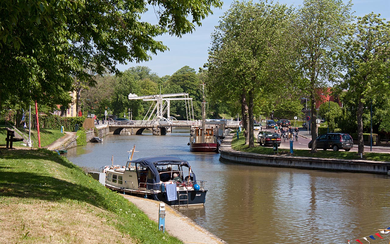 An Langeweile war nicht zu denken. Es fand ein Truck-Festival statt, an der Brücke ist immer was los, die Windmühle war in Betrieb und so wurde in der Mühle Mehl gekauft und den Supermarkt erreicht man übrigens vom Land und vom Wasser aus. Natürlich wurde auch das Hundi ausgiebig bespaßt. |