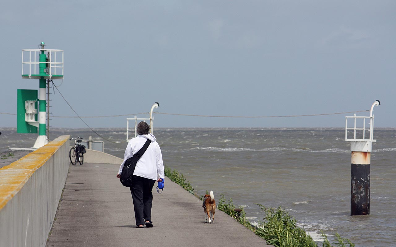 Wir gingen bis ans Ende der Hafenmole. Vom Krabbenkutter bis zum Kite-Surfer gab es dort ständig etwas zu sehen und das Hundi lief am Strand zu Hochform auf! |