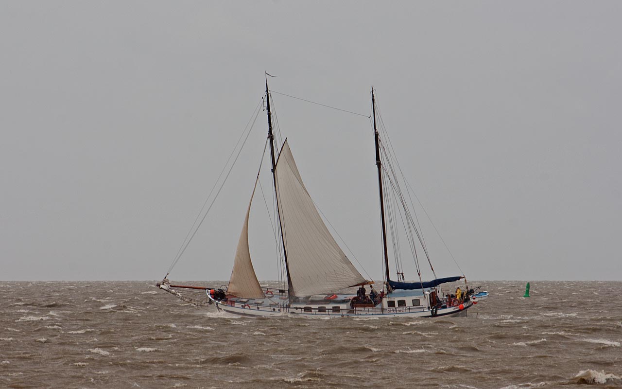 Nun kam der Freitag. Wind und Regen ohne Ende! Bei dem Wetter sah man sogar den Bojen an, daß sie keine Lust zum Schwimmen hatten. |
