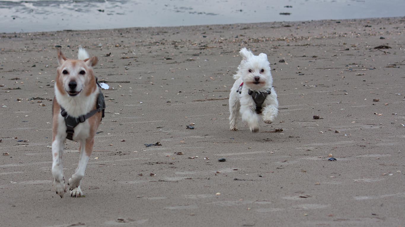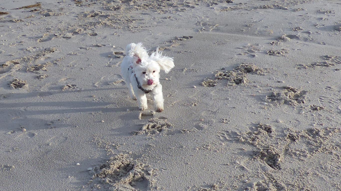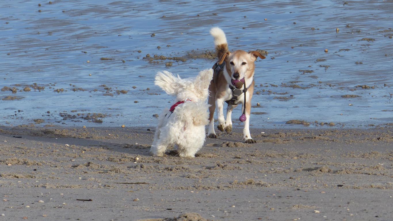 Am Südstrand hatten unsere Vierbeiner Spass, Minnie war kaum zu bremsen! |