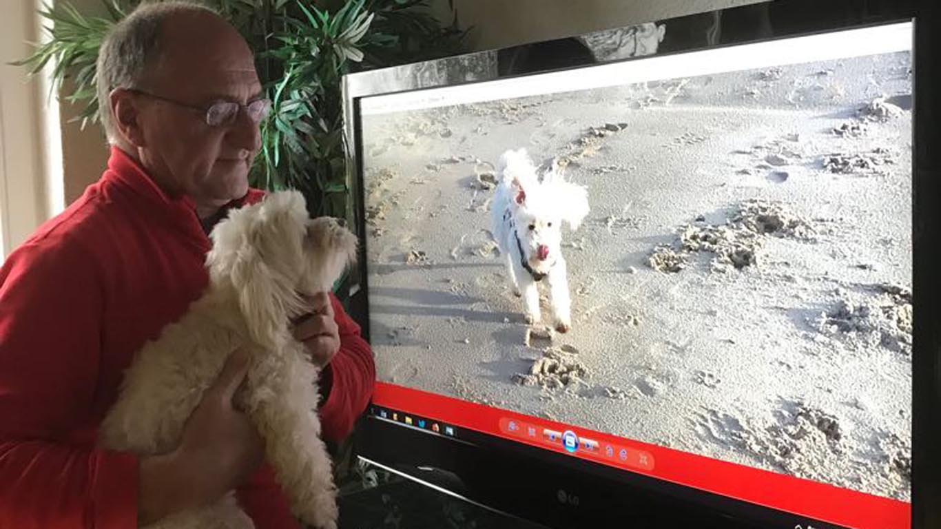Minnie und Chuck tobten vor Glück und waren super drauf und Minnie wollte die Strandbilder anschliessend noch einmal am Fernseher anschauen. |